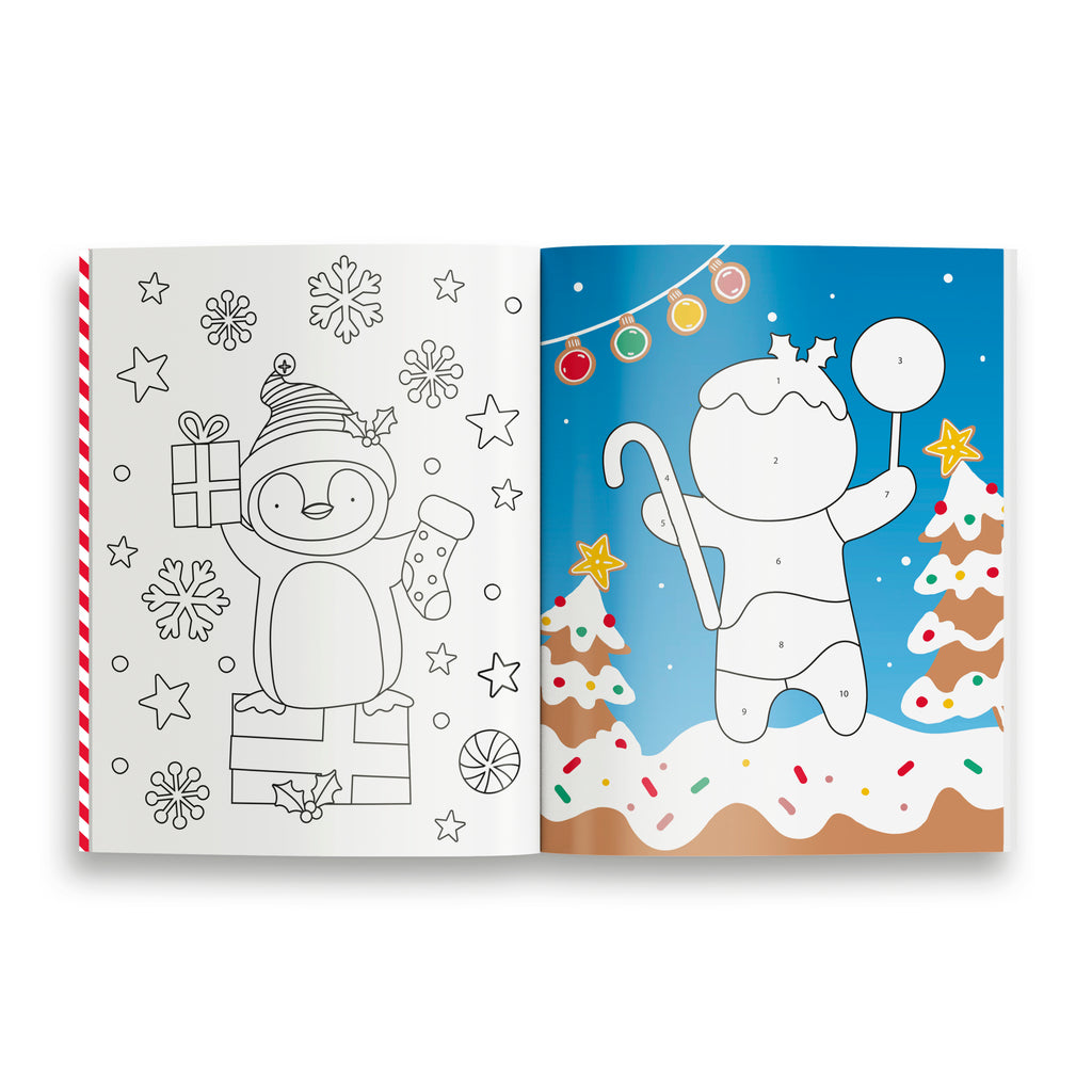 • Includes 12 festive sticker-by-numbers pages to complete with colourful stickers