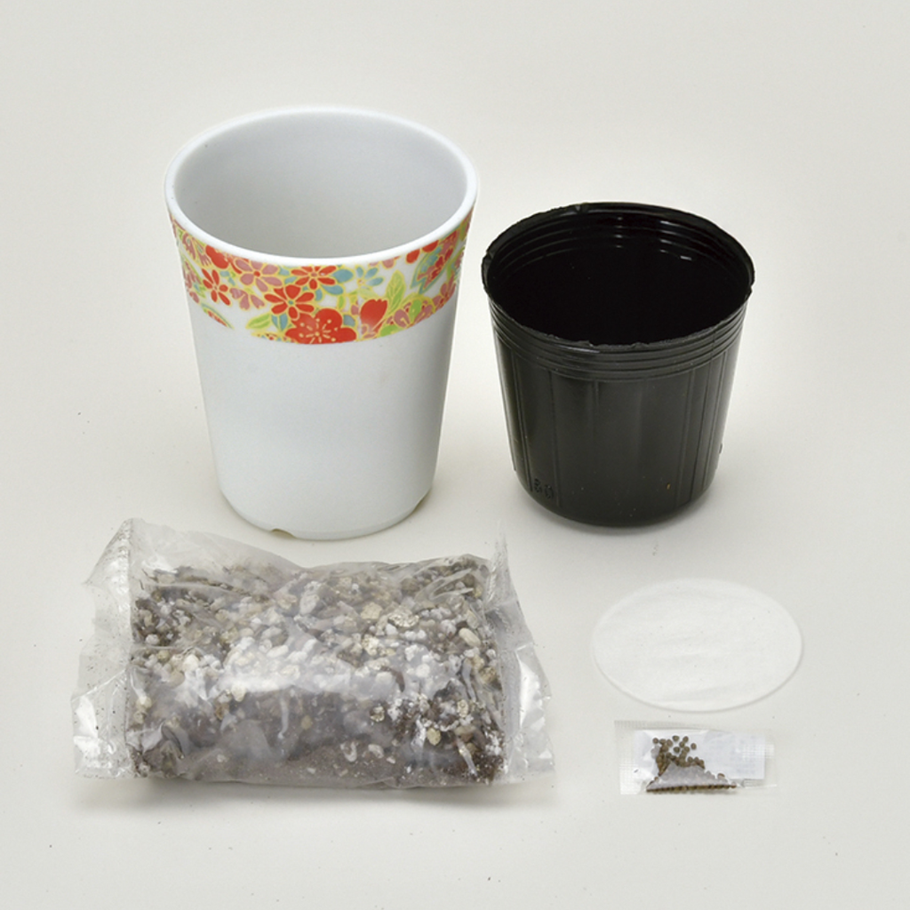 Contents: Small pot / potting soil / instruction manual / inner pot / seeds / pot bottom mesh