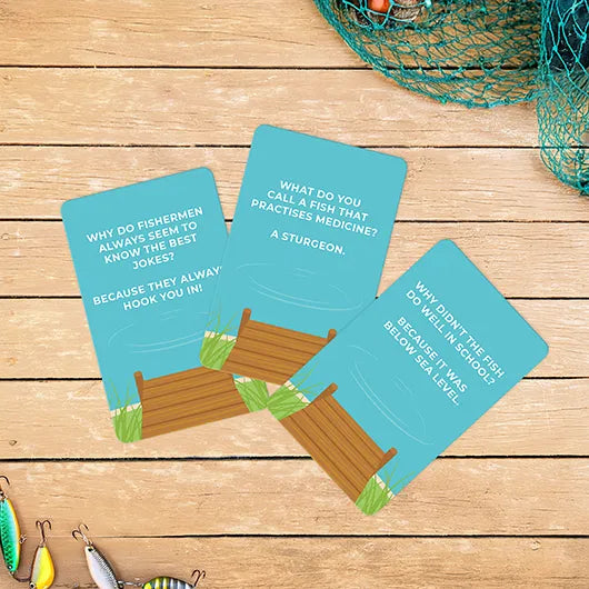 From "reel good" puns to eye-roll-inducing one-liners, this pack is the perfect sidekick for fishy fathers, pun-loving pals, or anyone brave enough to tackle terrible humour head-on.