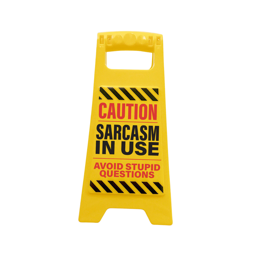 Ah, sarcasm. The language of the emotionally exhausted, caffeine-fuelled, and socially over-it. Let your colleagues know exactly what kind of energy you’re bringing to the day with the Sarcasm in Use Desk Warning Sign—a delightfully blunt piece of desk decor for those who just can’t help themselves (and don’t plan to).