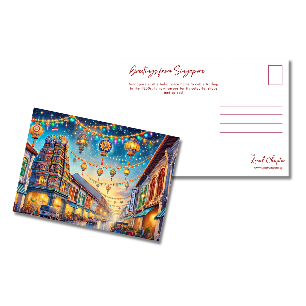 Step into the vibrant streets of Little India with this postcard that captures the spirit of one of Singapore’s most colourful districts. From rich cultural heritage to lively street scenes, this design celebrates the heart and soul of Little India.
