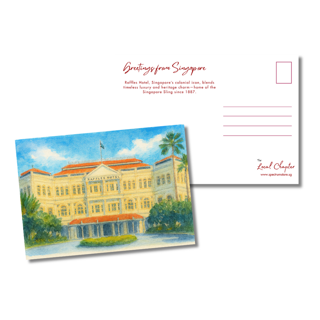 Send a piece of Singapore’s timeless elegance with this postcard featuring the iconic Raffles Hotel. Known for its colonial charm and storied history, this design captures the grandeur and heritage of one of the city’s most famous landmarks.