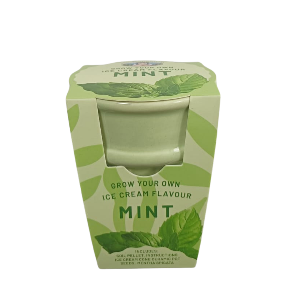 Includes: Ice cream cone ceramic pot, Mint seeds, Soil pellet (just add water), Step-by-step instructions