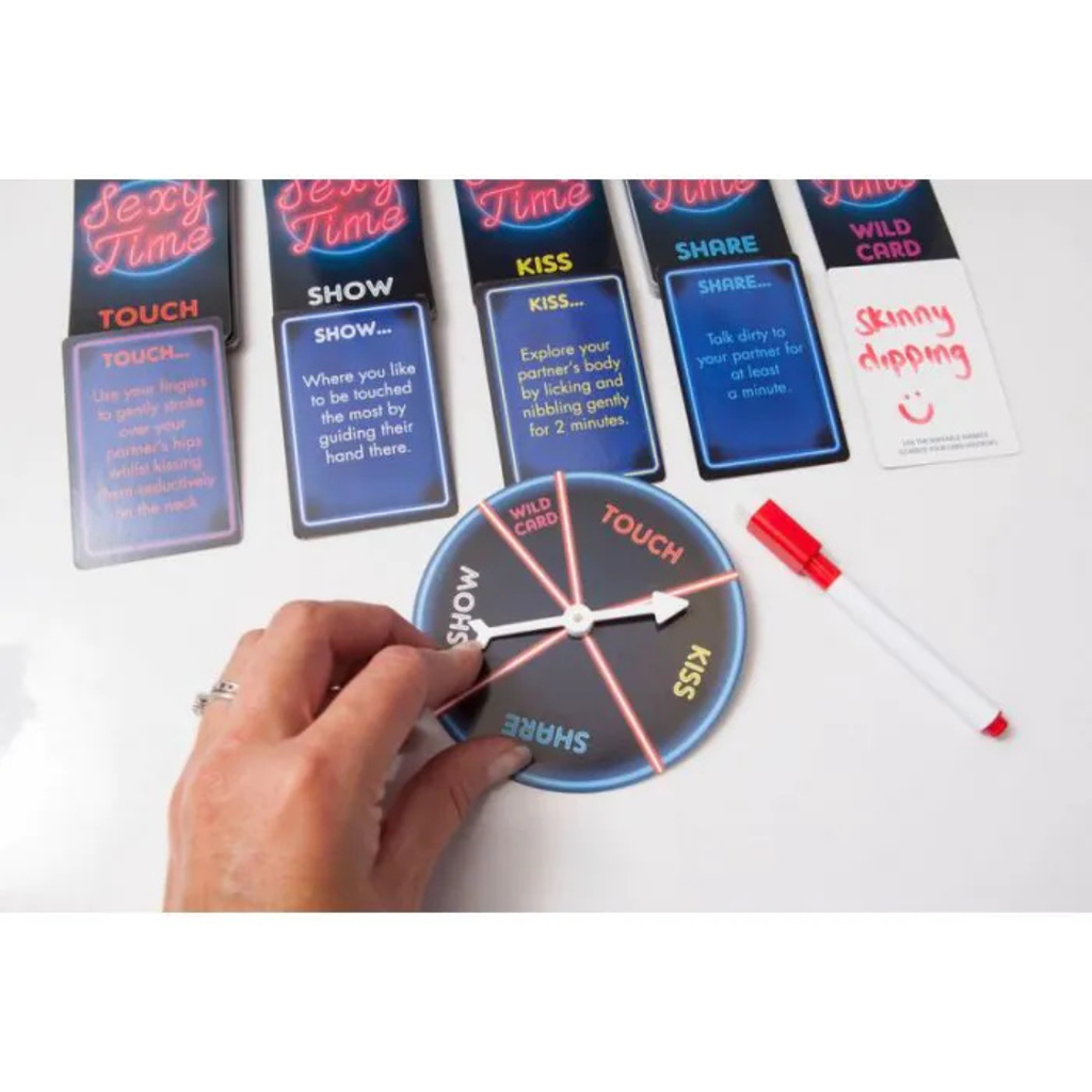In a new relationship and want to learn more about each other? Or want to reignite the sparks between you and your partner? Rediscover your lover and explore your deepest desires and fruitful fantasies with this fun, intimate card game for couples. In this erotic game of chance and romance, the five arousing categories (Kiss, Share, Touch, Show and Wild) will fill you with desire and anticipation, every time you spin the dial. Eight wild cards allow you and your lover to experience some of your own carnal fantasies by writing your own seductive thoughts on the wipeable cards with the included pen. Complete with a passion dial and 18 exploration cards, this intimate game of erotic passion will make your time together romantic and sensual. A thrilling game, Perfect for valentines or an evening of passionate fun. Take it in turns until you shatter with carnal desire.