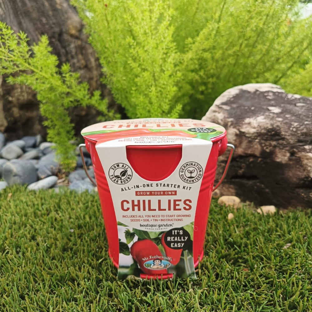 Grow spicy chilli in style! Our wooden handle vintage tin pot comes with everything you need: soil, seeds, and easy instructions. Perfect for adding a touch of rustic charm and bright blooms to any space.