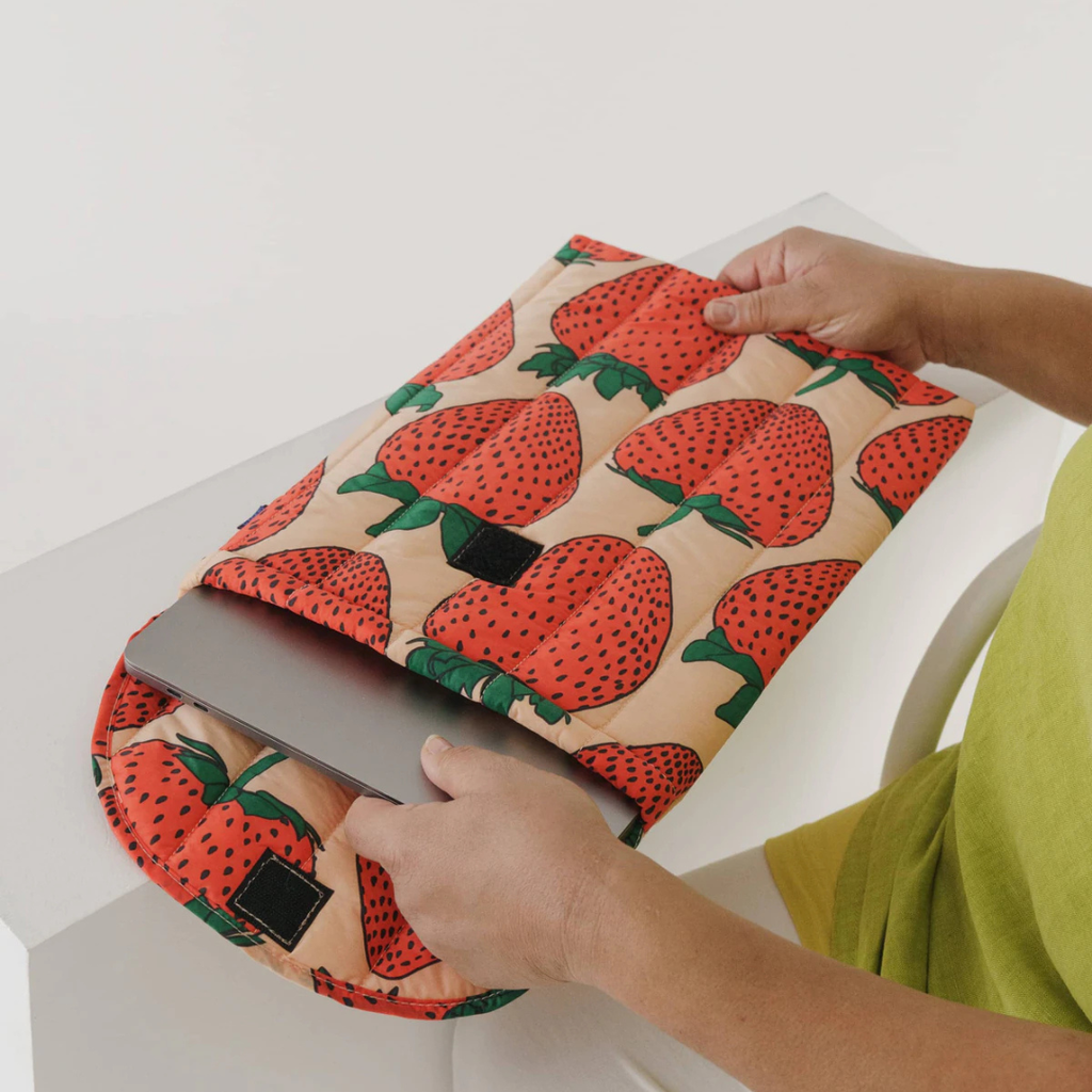 Your laptop does so much for you. Doesn’t it deserve a comfy cozy place to live? Our puffy laptop sleeve is quilted and stuffed to provide your 16" laptop or tablet with just enough padding for comfortable rides.