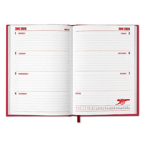 This exclusive gift box set is the ultimate treat for Arsenal FC fan. The set includes an official 2026 calendar, a matching diary, and a branded pen, all beautifully packaged for the ultimate fan experience. Plus, the lid plays an iconic anthem when lifted, adding an extra special touch for any Gunner supporter. Officially licensed and printed on premium-quality paper.