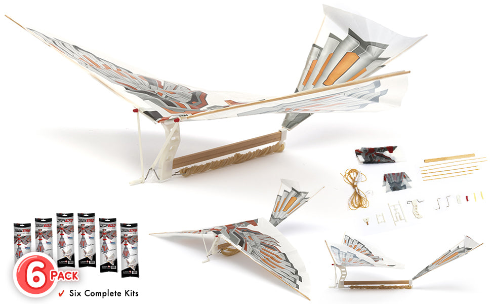Construct a rubber band powered ornithopter that flies by flapping its wings and simulating the fluttering sound. The bamboo structure provides strength while keeping the ornithopter light weight. It is a very hands-on craft model kit.