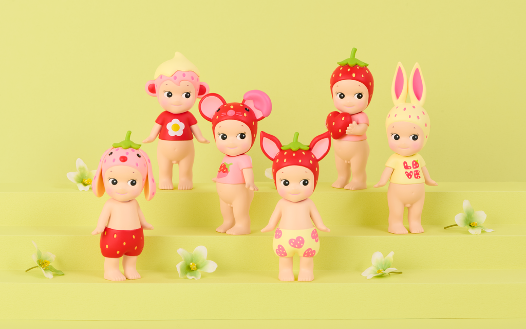 In the Strawberry Love Series, Sonny Angel wears cute costumes featuring hearts, strawberries, and animal motifs. Some mini figures hold heart-shaped fruits, delivering pure and heartfelt love with charm, while others showcase playful designs that capture the sweet spirit of the series.