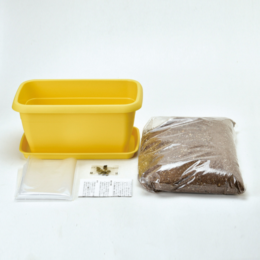 This cultivation set uses a colored planter that holds a generous 2 liters of soil. The extra soil allows the roots to spread well, resulting in strong, thriving plants.