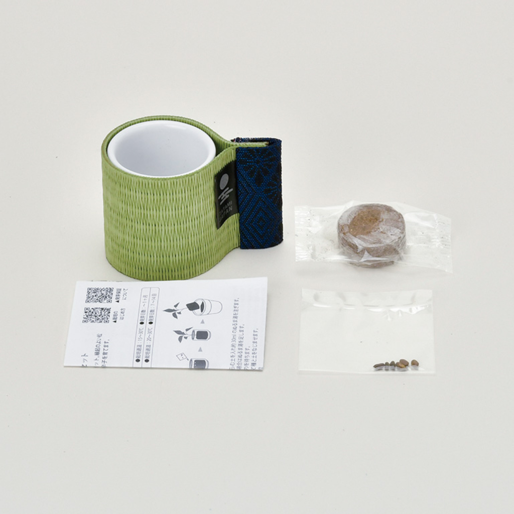 The texture of the tatami and tatami edging evokes the atmosphere of an authentic Japanese room. The sake cup features Edo-style calligraphy and is packed with a Japanese feel, allowing you to grow auspicious Japanese plants.