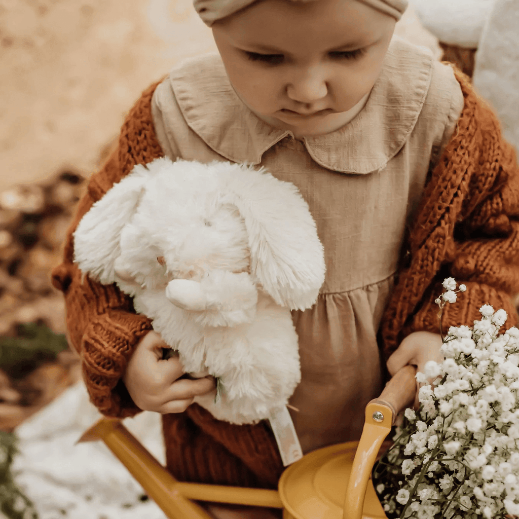 Rutabaga is one of our most popular stuffed bunnies, loved by wee ones and adults alike. This chubby little bunny rabbit is rounder than he is tall, with fluffy tan fur and a sweet hand-embroidered face. The perfect gift at any time for anyone.